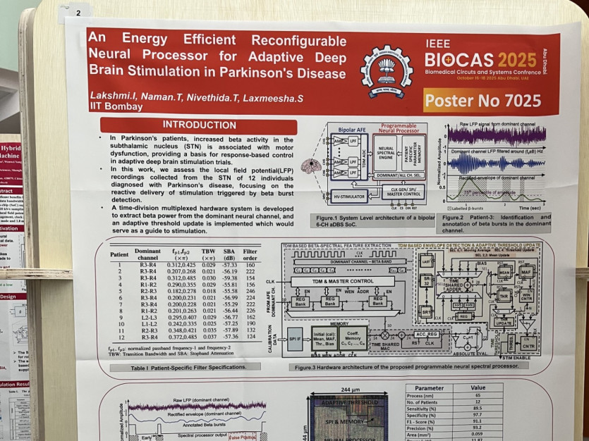 참관내용 | <10/16 (목)> 튜토리얼에서 Cyber-secure biological systems, Wearable photonic healthcare, Wireless biomedical sensors(near-zero-power~battery-free), Optical biotelemetry가 다뤄졌다. Mixed-signal SoC에서 co-design 연구와 ultra-low-power link 통합이 인상적이었다. Keynote에선 neuromorphic LLM accelerator와 energy-efficient SoC 방향에 대한 영감을 얻을 수 있었다. Security IP(secure boot/PUF), medical-grade safety verification에 대해서는 더 많은 연구가 기대된다. <10/17 (금)> 세션에서 AI for Healthcare, Biopotential signal processing, Biosensor interface circuits, Biosignal processing이 진행되었다. 특히 in-memory compute(IMC) 설계, low-noise AFE+ΣΔ/Successive-Approximation ADC, on-device learning/quantization-aware inference를 SoC에 적용하는 흐름의 연구가 진행되었다. Keynote에선 neuro-inspired memory로 memory와 AI pipeline을 접목하는 독특한 방향성이 제시되었다. 초기 단계의 연구로, 후속 연구가 중요한 application에 사용될 수 있을 것이다. <10/18 (토)> Implantables/Ingestibles, Neuromorphic circuits & systems, Power management for biomedical devices, 종합적인 biomedical circuits 세션이 진행되었다. 특히 sub-µW PMIC, energy harvesting(RF/thermal/photovoltaic), bio-safe power delivery 등의 연구가 인상 깊었다. Keynote에선 nature-inspired analog IC design을 주제로, e-skin에서 neuromodulation까지 적용될 수 있는 digestible, implantable electronics의 발전 방향에 대해 소개했다. | |||||