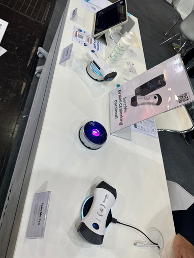 Intracranial Haemorrhage 검사장치를 체험해보았다. 헬멧 형태의 기기로 직접 착용을 하면 디스플레이 상에서 검사되는 과정이 표시되며 일정 시간이 지난 후 해당 질환이 있는지 yes/no 형식으로 결과가 나오게 된다. 인상깊었던 점은 헬멧 내부는 스프링 느낌의 패드가 수십개가 있고, 이 패드들이 머리와 접촉을 하면서 측정하는 방식이었는데 머리카락이 있어도 측정이 가능하다는 점이었다. 센싱 방식은 알 수 없었지만 헬멧 내부에서 이미징을 통해 결과를 얻어내는 것이 아닐까 싶었다. 헬멧은 꽤나 무겁고 결과 또한 질환 유무만 표시되기 때문에 한계점은 명확히 있었지만 정확도가 100%에 가깝다고 말씀하셨고 경량화 및 디스플레이적인 발전이 있으면 상용화됐을 때 큰 메리트가 있을 수 있겠다고 생각했다.