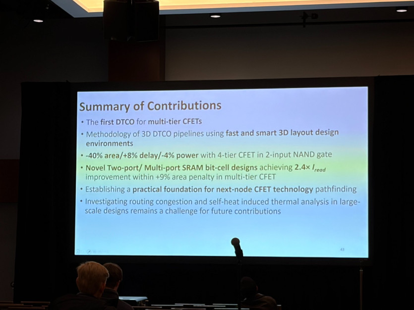 이 밖에도 IEDM 2025 학회에 참석하여 Compact Model, 3D NAND, Logic Technology 세션을 집중적으로 청취하며 최신 기술 동향을 파악하였다. 시스템 반도체의 고성능화와 3차원 이종 집적 추세에 따라, 공정과 설계를 잇는 정밀 모델링 기술이 필수적임을 재확인했다. 특히 이번 참관을 통해 단순한 소자 특성 개선을 넘어, ML 기술을 접목한 PPA(Power, Performance, Area) 최적화 방법론에 대한 통찰을 얻었으며, 이를 바탕으로 향후 연구 과제의 방향성을 구체화하는 성과를 거두었다. | |||||